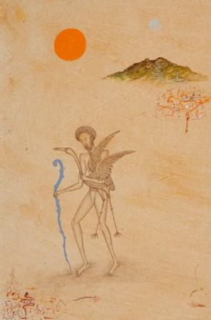 Path of the Pilgrim series – watercolour +gouache on paper (A4) artwork by Catherine Parker and Kamal Swami (India)- Suggested Art activity – ‘the artist as pilgrim’ – a concertina artist book full of your daily musings and drawings – try a silhouette, a temple cut out, pathways and bridges to symbolise your journey – perhaps threads – keeping the textile connection